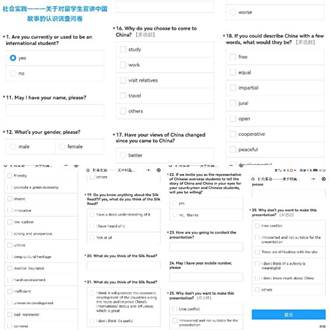 为更好地了解各个国家学生、高校、企业技术人员和在华的留学生及中国学生对“在华国际学生讲述中国故事”这一主题的认识,同时也对本次实践活动做好前期宣传工作,实践小组精心设计了线上调查问卷,采取中英文结合的形式,面向更广阔的中外人群发放问卷,得到更多的调查数据。问卷共回收126份,结果显示,大家普遍认为这些年中国发展迅速,认为中国是一个开放包容、自由、平等、公正、法治、文化底蕴深厚的大国,且对于留学生讲中国故事抱有极高的期待与积极的看法。在成员与留学生交流的过程中,留学生对此次活动保有相当的热情,同时也能看出他们对中国的喜爱。来自哥伦比亚的留学生Bob谈道:“我一直很想提高自己的汉语能力,我也一直希望能够向我们国家的朋友和家人讲述中国的故事。”团队最终确定以来自吉尔吉斯斯坦的阿米娜(Amina Musarova)、来自巴基斯坦的曼扎·伊利亚斯(Manzar Ilyas)、以及来自乌克兰的龙智慧(Zachepylo Sofiia)三人为主要宣讲人。