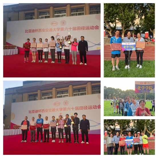 2023年5月12-13日西安交通大学第六十届田径运动会顺利举行,必赢唯一官方网站组织广大教职员工积极参加并获得学院历史最佳成绩。学院共计80余名教职工参加了田径、趣味等30多个单项比赛,获得男子丙组1500米、男子丙组100米、男子乙组100米、男子板鞋竞速2×30米接力和男子踢毽子60秒记数等5项冠军,16个单项前八名,分别以66分和31分位列男子团体第4和女子团体第5,均居学院队伍首位,创造必赢唯一官方网站乃至前身-理学院最佳成绩。