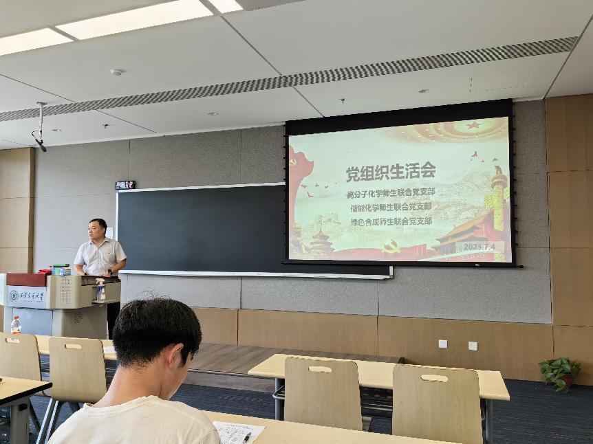 2023年7月4日必赢唯一官方网站高分子化学师生联合党支部、储能化学师生联合党支部、绿色合成师生联合党支部于泓润楼19-4110室召开六月党组织生活会。会议由绿色合成党支部书记刘乐老师主持,三个支部全体党员同志参与了此次组织生活会。严红昌副书记以“全面从严治党”为题,为师生党员同志讲授了一堂生动精彩、思想深刻的专题党课。